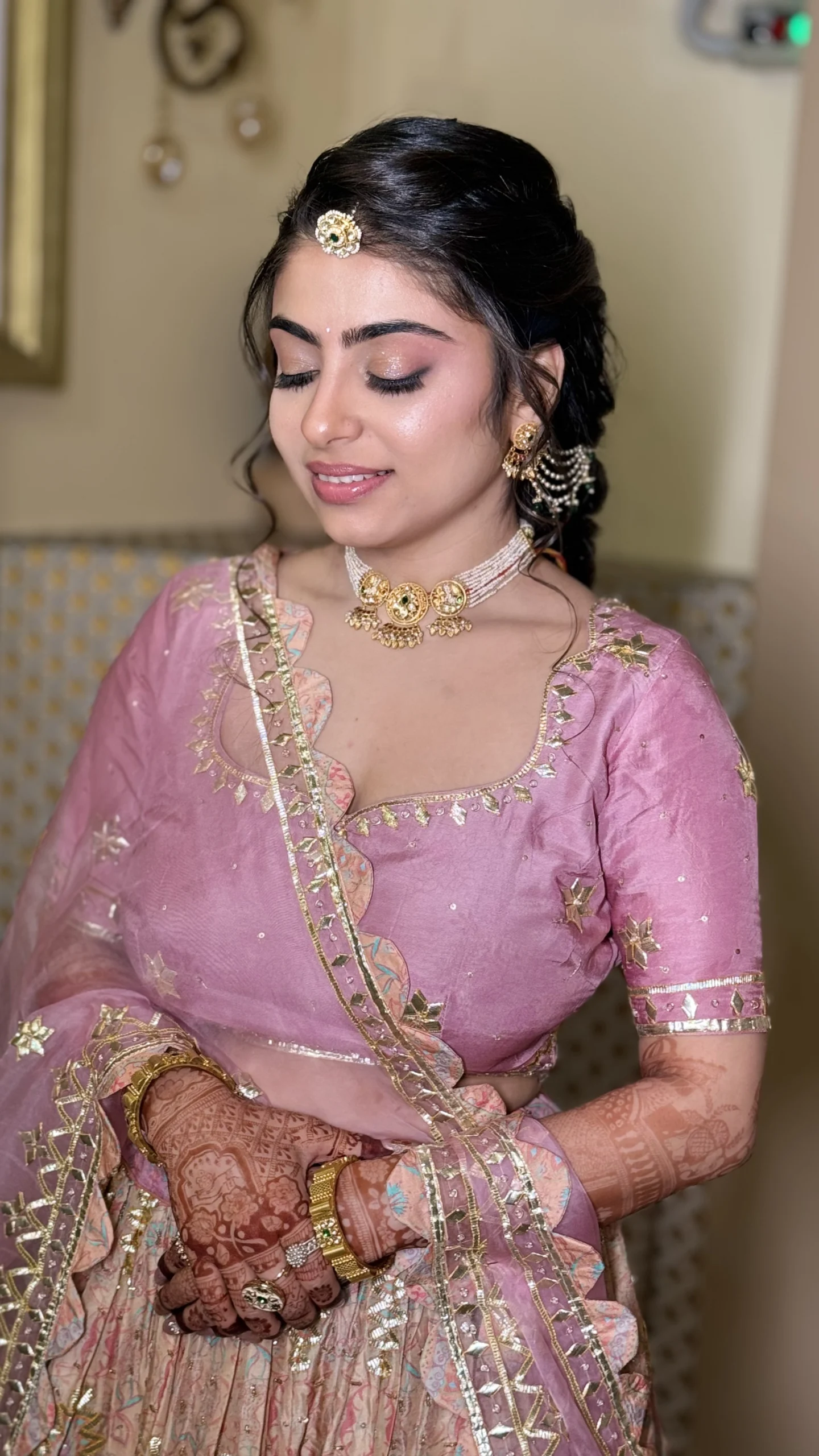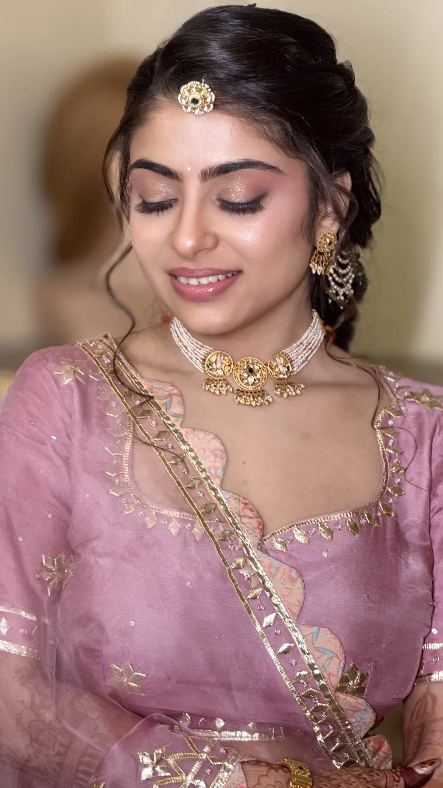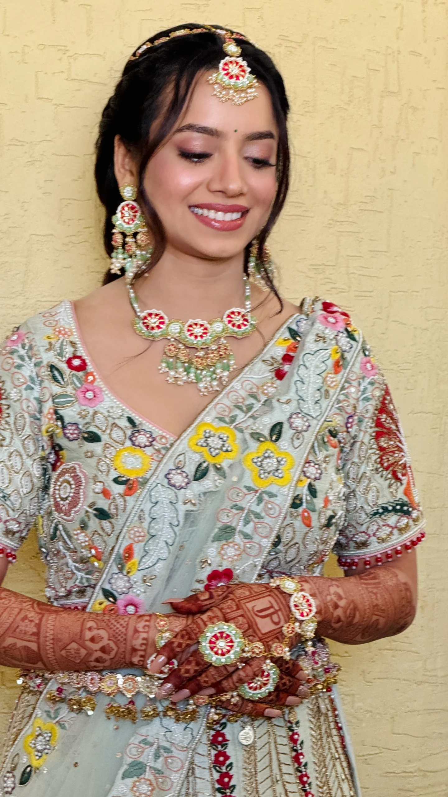 I stressed over a lot of decisions I had to make for my wedding but Booking Surbhi Govindani Makeovers for my wedding makeup was certainly not one of them. I booked her for all events and every look was different and beautiful in its own way❣️.Best thing about her makeup is she enhanced my features rather than giving the same look to every bride.I really felt flawless on my big day and not just made-up. In mid of all the hectic events you’ll find peace and a moment to relax at her studio. She is friendly, will guide you what would look better and also open to discussion about what are bride’s preferences. Surbhi is a true professional – PUNCTUAL , ORGANIZED, EXPERIENCED – as well as an amazing artist. I got so many compliments on my looks . I’m so happy and satisfied , Thank you Surbhi for your magical Touch ✨ PS- Please book her prior !